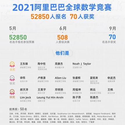 9月23日晚,2021阿里巴巴全球数学竞赛落下帷幕。这场全球数学竞赛,集结了52850名世界各地爱好数学的“学霸”们,最终有70人获奖。其中西安交大2014级少年班、2016级数学试验班校友、加州大学伯克利分校博士研究生陶中恺获得金奖。