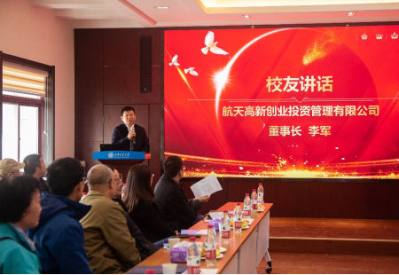 航天高新创业投资管理有限公司董事长李军作为校友代表讲话。李军校友表示,奖助金的设立,是校友们共同的心愿,也是对学校发展做出的一点贡献。他指出,校友们如今取得的成绩都离不开母校和老师的教诲,建立奖助金帮助学院学科发展,这是对母校感恩之情的一种表达方式。同时,奖助金的设立也使得全体同学更加深入关注学院发展,同时增强了校友们之间的感情。最后,校友们会配合好基金会和学院的工作,按照基金会的管理要求,最大程度地发挥出奖助金的效能,同时也希望奖助金能长期为学校和学院发展做出应有贡献。