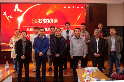 在随后举行的校友奖学金颁发仪式上,孔德顺、许洪涛、章利光、左江宏等四位校友代表和学院党委副书记李义宝、基金会副秘书长方华靖共同为“数学系87级校友奖助金”获奖学生颁发获奖证书。