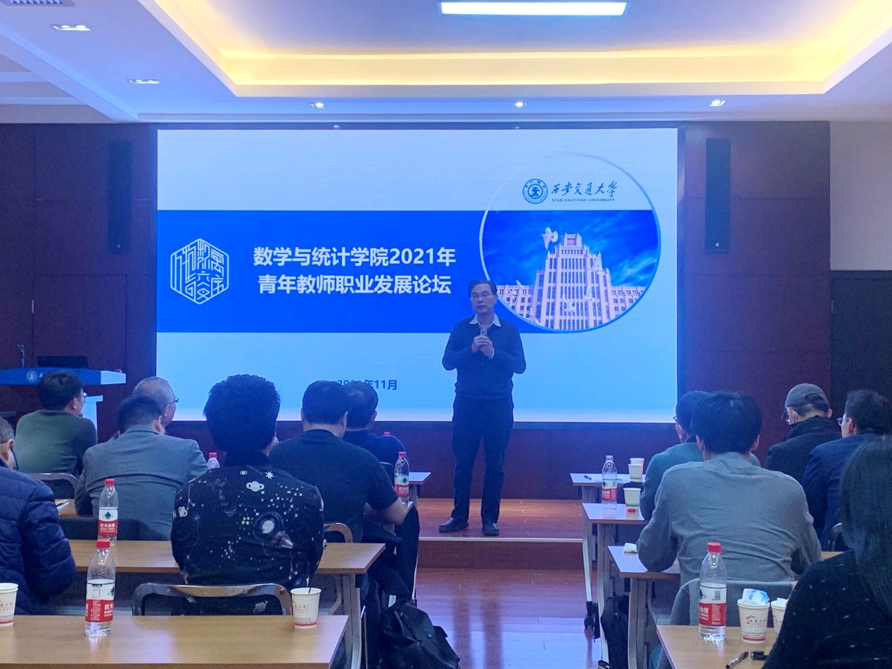 徐宗本院士在致辞中首先对学院持续关注青年教师发展开展的系列活动表示肯定,希望学院继续坚持“引培并重、凝聚智慧、增进交流、共谋发展”的队伍发展理念。其次,徐院士告诫大家科研学术和科技创新要“接地气”,要始终坚持四个面向,关注科研成果对于服务国家战略需求的作用。大学是为国家培养人才的地方,教师要时刻保持自我提升,以奋发向上的精神劲头,在教学科研工作中抓紧每分每秒。最后,徐院士结合自身发展经历和体会,劝勉广大青年教师潜心沉积、久久为功,勇于坐冷板凳,敢于坐冷板凳,会坐冷板凳,才能牢牢抓住学术前沿,把冷门做成热门。