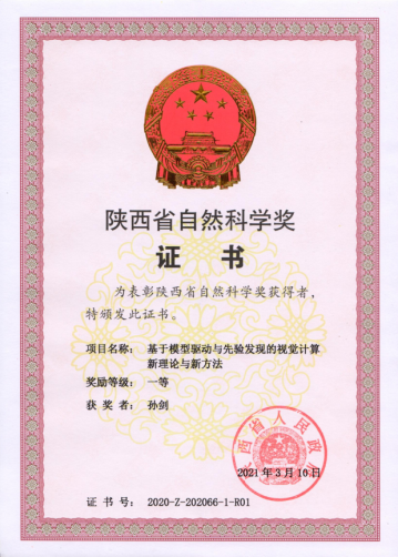 孙剑、李慧斌、杨燕完成的“基于模型驱动与先验发现的视觉计算新理论与新方法”项目荣获2020年度陕西省自然科学奖一等奖。