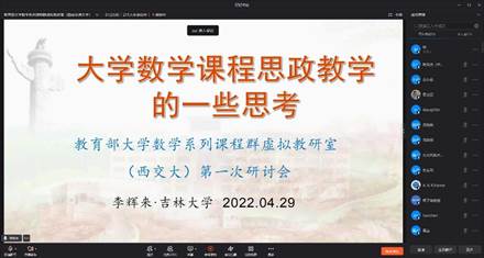 2022年4月29日下午,教育部首批虚拟教研室建设试点——大学数学系列课程群虚拟教研室(爱爱啦