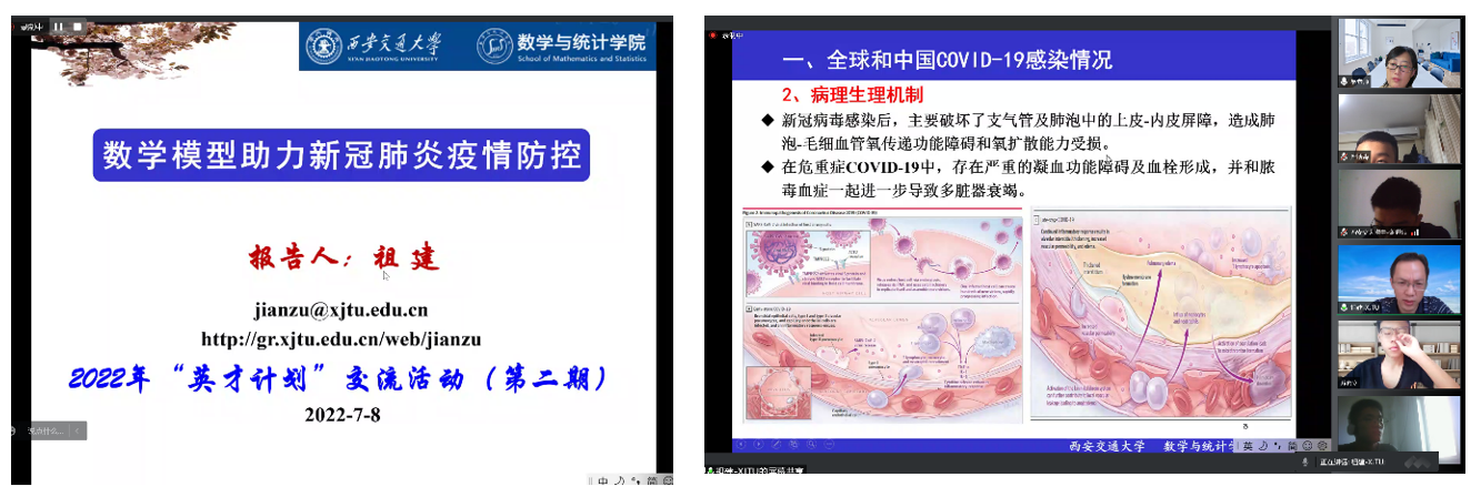 祖建教授以“数学模型助力新冠肺炎疫情防控”为题,结合多年来从事生物数学和传染病动力学研究的亲身经历,深入浅出地为同学们介绍了数学在传染病防治中的实际应用。祖老师首先介绍了爱爱啦