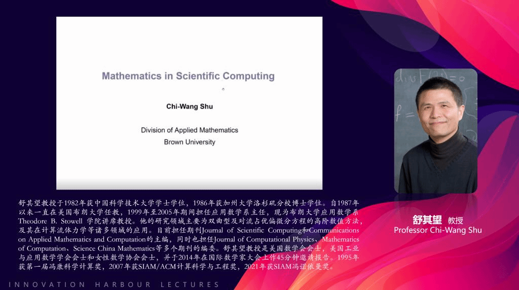 布朗大学舒其望教授作了题为“Mathematics in Scientific Computing”学术报告,简要介绍了科学计算,并结合一些特例来展示数学在其发展中所扮演的重要角色。
