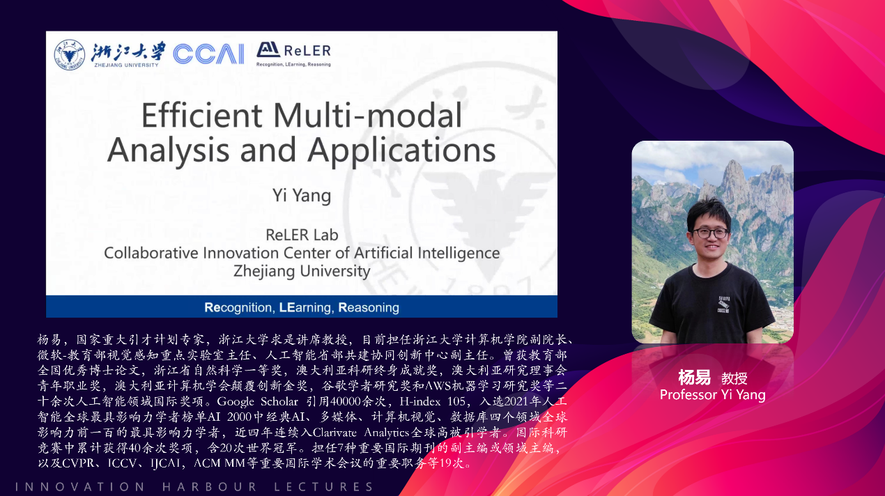 浙江大学杨易教授作了题为“Efficient Multi-modal Analysis and its Applications”学术报告,通过具体案例,展示了多模态智能分析技术在实际场景下的广泛应用以及智能视觉系统在感知上的研究进展。