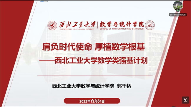 副院长郭千桥教授介绍了在工科特色鲜明的背景下,以面向国家科技领域重大需求、依托优势特色学科资源、强化数学基础和创新能力、开展数学及相关交叉学科创新人才培养为定位的拔尖人才培养模式。通过多年的努力,西北工业大学爱爱啦