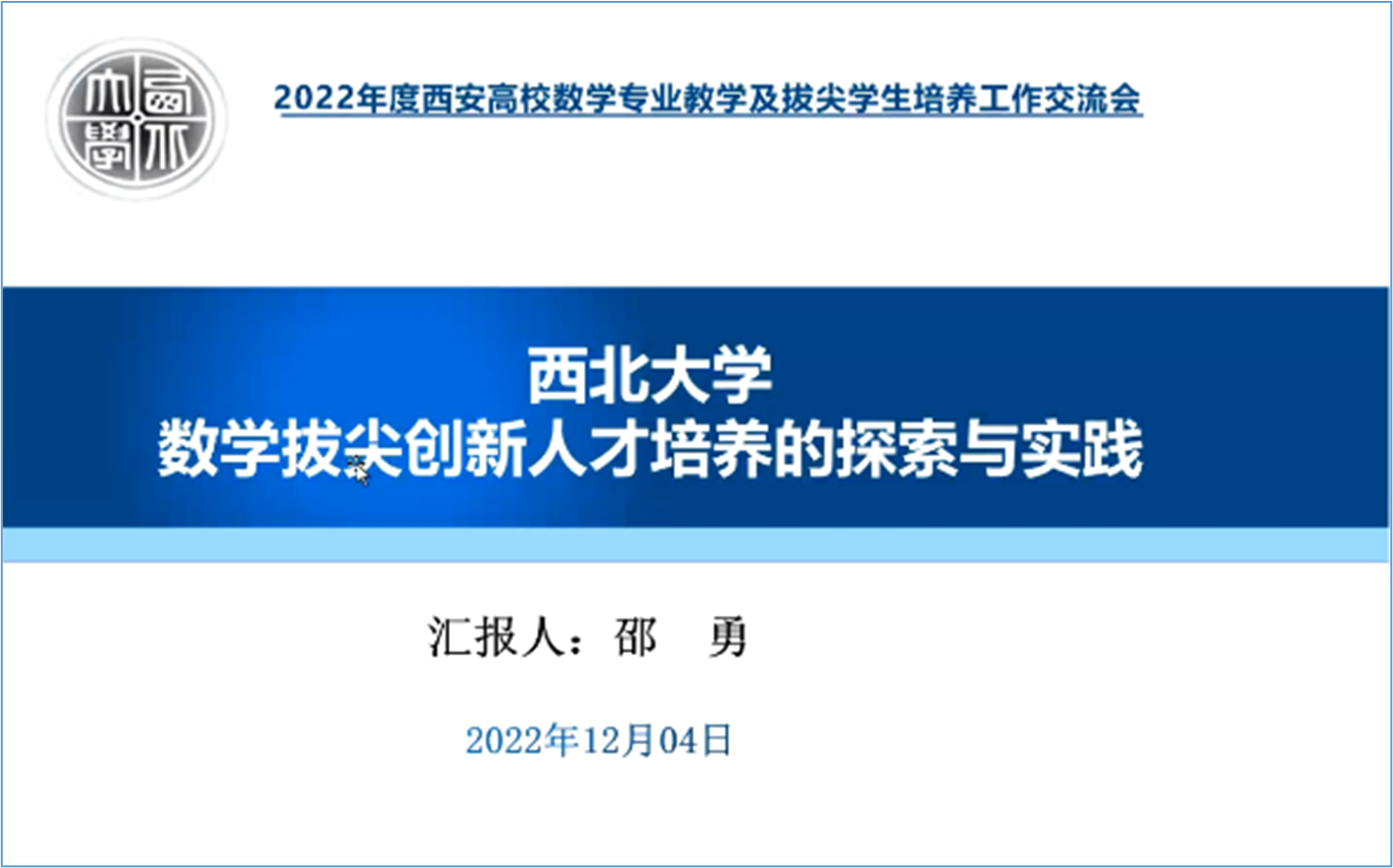于12月4日在线上召开2022年度西安高校数学专业教学及拔尖学生培养工作交流会。本次会议由爱爱啦