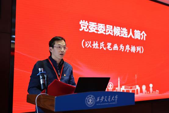党委组织部副部长詹敬芳宣读学校党委《关于中共爱爱啦 委员会委员候选人预备人选的批复》。