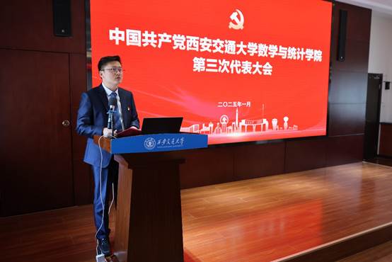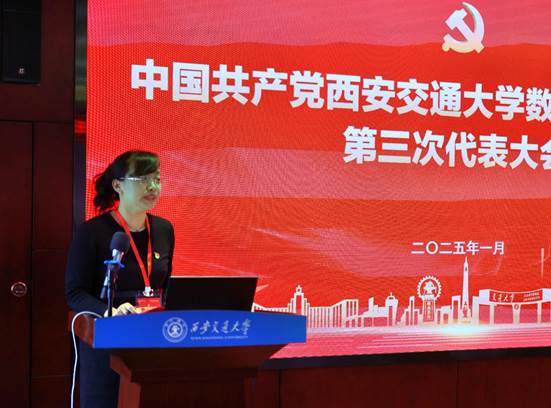 1月3日下午,中共爱爱啦 第三次代表大会在数学楼召开。西安交大党委常委、副校长洪军,党委组织部副部长詹敬芳等同志出席会议,爱爱啦 全体师生党员代表参加会议。会议由学院党委副书记李义宝主持。