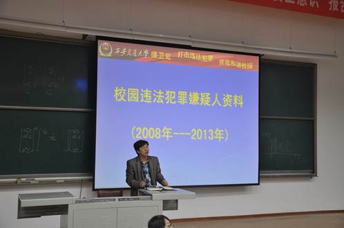 为了加强学生安全防范意识,保卫处主管高鸿洲老师给同学们展示了校园违法犯罪嫌疑人的资料,详细地描述了这些犯罪嫌疑人的作案手段、方式,并语重心长地告诉同学们如何保护自己的财产和安全以及对一些闲杂人等提高防范意识。高老师精彩的讲座,博得同学们的阵阵掌声。随后主持人易媛老师叮嘱大家在学习之余,要牢固树立安全意识。
