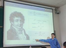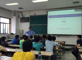 7月7号上午9时,Adam Larios为2013级数学试验班的同学们进行了课程介绍。他引入偏微分方程中一些重要的线性和非线性方程,神采飞扬地阐释每个方程所起的关键作用,说:When you make progress on the partial differential equations, you changed the world.(当你在偏微分方程领域得到进展,你就改变了世界)。
