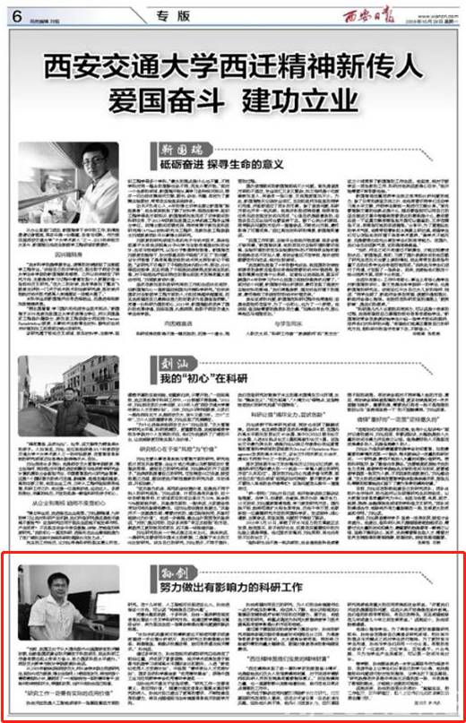 “西迁精神体现了老一辈科学家的爱国奋斗情怀,也是留给我们交大人的宝贵精神财富,对于促进年青教师和科研人员的发展具有重要指导意义。”而这股精神力量,也一直潜移默化地影响着孙剑,践行在他日常点点滴滴的工作中。
