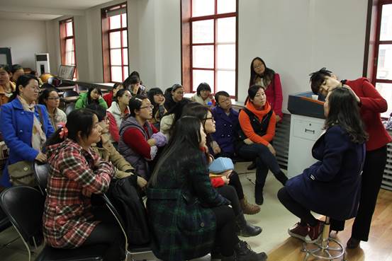 研究生女同学们介绍美容、美妆、造型以及穿衣搭配方面的知识。