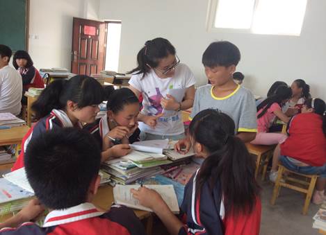 在这几天,队员们实行跟班政策,每名志愿者负责一个班级,跟随学生一起听课,与学生们一起分小组讨论,为他们答疑解难。数学课堂中,发挥我们的学科优势为学生们发散思维,拓展思路;英语课堂中,与同学一起学习,为他们补充课外的知识点,向学生介绍一些英语习语,提高学生的英语使用能力,拓宽知识面;音乐课上,与同学们一起唱歌,在温馨而甜蜜的歌声中融合着浓浓的师生情;此外,还一起回顾历史,纵览地理,探晓生物,欢声笑语,寓教于乐。队员们还利用晚自习时间,和同学一起制作莫比乌斯环,在制作的过程培养学生的动手能力,打破学生对图形的常规认识,亲身感受几何的奥秘;利用自习时间,和学生一起探索笔画的奥秘,在尝试中总结笔画的规律,让学生学会归纳总结;和学生一起做游戏,英语单词接龙、遇七拍掌,以及一些提高团队合作能力的小游戏。
