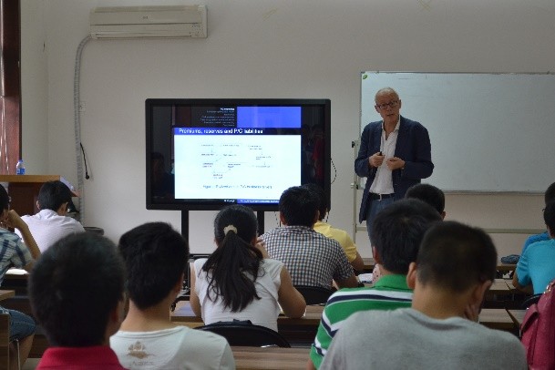 报告会中Giorgio Consigli教授与试验班同学、研究生们积极讨论、互动良好,一个半小时之后,讲座在同学们热烈的掌声中结束。