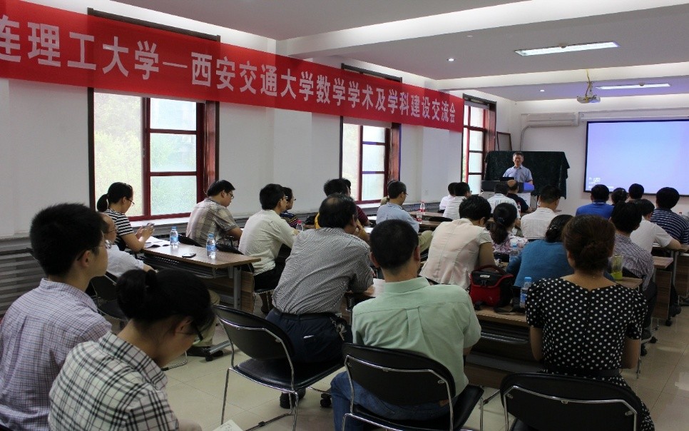 在处理好办专业与基础教学之间关系的经验。随后,卢玉峰教授介绍了大连理工大学数学科学学院的办学理念、学科优势、特色、及面临的问题等。最后,徐宗本院士对大连理工大学数学科学学院以基础数学引领发展的办学理念表示肯定,指出两院有着相似的办学目标、发展历史及背景,因而双方的广泛交流、相互学习借鉴有着重要意义,希望双方推动实质化交流,形成定期交流机制,交流内容可从学术交流扩展至办学思路、学科建设、教学质量、行政管理等多方面。简短的开幕式后,双方教师代表分别做了学术报告,学术交流气氛热烈。