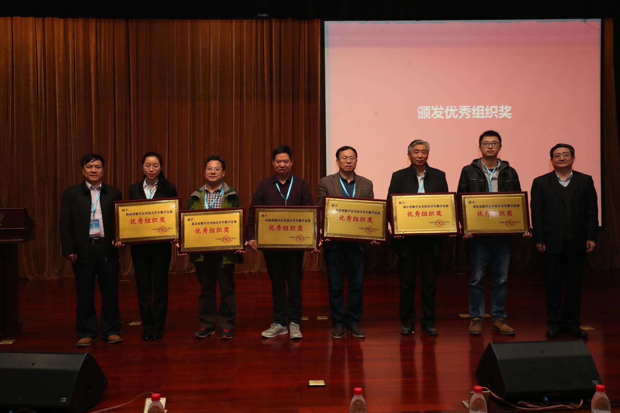 会上,领导和嘉宾为获得最佳组织奖的6个赛区代表颁发奖牌,同时也为获得一等奖的数学类和非数学类的91名同学颁发获奖证书。
