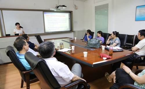 此次报告会,要求各位老师将此次研修的体会及相关课程内容用全英文讲授30分钟,再由专家组成员针对每位老师进行10分钟的点评提问。专家组成员就英文语法、英文发音、课程设计、内容设置、互动设计以及教姿教态等方面进行了全方位的提问和点评。这次报告会,为相关老师进一步搞好双语课教学,以及其他老师如何上好一堂课都有很好的促进意义