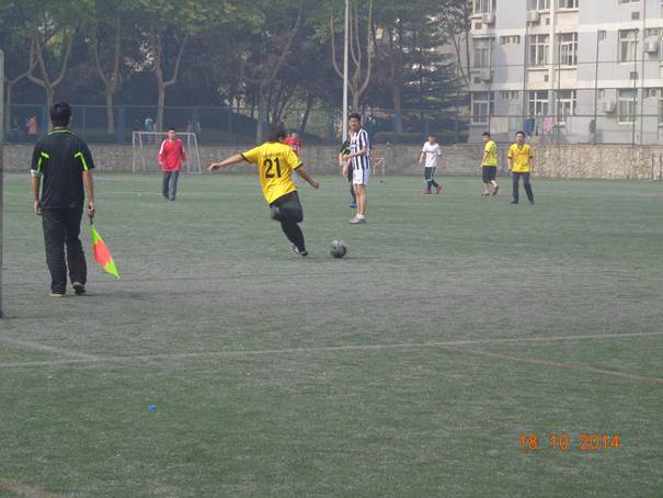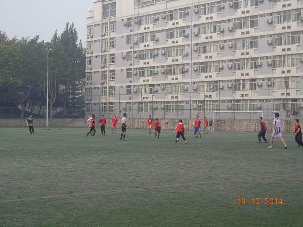 此次比赛共有四个参赛队,在两个赛场,以单循环赛制,进行六场比赛。比赛前,队员们个个激情满怀,积极做好准备。比赛时,队员们迅速投入比赛,个个雄姿英发。在足球场上,你争我夺,动作潇洒,帅气利索,双方争夺异常激烈,比赛进行得如火如荼。拉拉队员们也激情四射,人声鼎沸,笑声一浪高过一浪,呐喊声一声高过一声。在比赛过程中,裁判人员秉公执法,严肃认真,保障了比赛的公证性及其顺利进行!当然,比赛中难免会出现队员的摔倒,不过我们的后勤服务做得很到位,我们的队员也很勇敢,在哪儿跌倒就在那儿爬起,那一幕又一幕,无一不说明他们就是最可爱、最坚强、最帅气的人!
