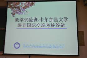 汇报中每位同学详细介绍了自己在国外期间的课程学习情况和科研训练情况并进行答辩。暑期交流期间,他们在国外课程学习的同时,积极联系科研导师,每名学生在导师的指导下参与相关的应用数学领域小课题,开展研究与实践,使自己在知识学习与实际应用的过程中不断收获,不断进步。汇报结果显示虽然这些同学所掌握的知识较浅,但大家表现出了较强的求知劲头,呈现出了较好的效果。6名同学表示,此次交流学习大大地拓宽了眼界、提升了自信、锻炼了独自生活能力更激发了他们未来从事数学与数学应用研究的浓厚兴趣。