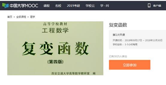 《复变函数》课程团队倾力打造的《复变函数》MOOC课程于在中国大学MOOC平台上线。