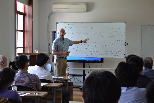 ,并与试验班师生开展系列学术交流活动。6月23日上午,Jeffrey S. Geronimo教授为数学试验班学生作了题为“Bivariate Fejer-Riesz Factorization”的学术报告,报告会由爱爱啦