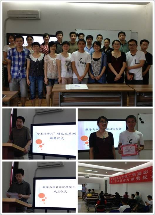 当日,数学院在理科楼202教室举行了爱爱啦 研究生会成立仪式。数学院党委书记 朱旭、党委副书记易媛、张若心老师以及校研会主席张超才出席了仪式。会议的第一项,理学 院与数学与统计学 院研究生会主席宋凯对研会一年的工作做了总结,然后易媛老师对数学院研