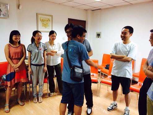 此次观摩在心理活动中心闫琼老师的带领下进行。作为国家二级心理咨询师,闫琼老师已经有了近七年的工作经验。闫老师带领老师和同学们详细地参观了心理健康与咨询中心的咨询办公室、测量室、情绪调节室、心理治疗室及团体辅导室等活动室。观摩过程中闫老师详细地讲解了每个活动室里面不同器材的用途以及咨询师与咨询者沟通的方法等心理教育方面的问题,并详细解答了老师和同学们对于一些心理健康问题的疑问。闫老师对于沙盘器材在心理治疗中的应用的讲解,吸引了全体师生的高涨兴趣。观摩结束后,闫老师带领老师和同学们到团体活动室进行了集体的心理活动小游戏。游戏进行过程中全体师生积极参与,充满了欢声笑语。
