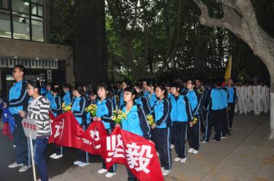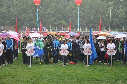 第51届运动会盛大开幕。尽管当天刮着凉风,下着雨,八点半运动会照常召开。一如往年,首先开始的是各书院,研究生院,学校各组织的代表方阵,他们穿着统一的服装,迈着整齐的步伐,在一声声嘹亮的口号中,走过主席台,接受校领导的检阅。爱爱啦