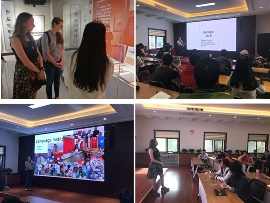 5月8日下午2点,两位来访外籍学生代表参观了交大博物馆,在英文讲解员的介绍下接触了解交大百廿年的悠久发展历程、深厚的文化积淀。随后,外籍学生代表来到数学楼2-1会议室,进行佐治亚理工学院本科国际交流项目宣讲。Grace Harper从校园生活方面为同学们展示了佐治亚理工学院的食宿生活,校园文化,鼓励同学们在佐治亚理工学院学习交流期间除了完成课程学习,还要多与同学与导师交往,积极主动参与科研训练,同时也能更好地体验美国文化生活。佐治亚理工学院数学专业大三学生Courtenay Morse则重点介绍了佐治亚理工学院数学专业本科生的主要课程,重点展示了图论、数论基础、拓扑学等课程教学的涵盖内容,同时分享了佐治亚理工学院独特的独立阅读课及交流项目中对英语课的要求。