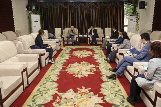 肖燕妮副院长一同与西交利物浦大学学术事务副校长David Goodman教授和学生与信息事务副校长钞秋玲教授进行座谈,交流两校的学生交流、教师来访等方面的合作。