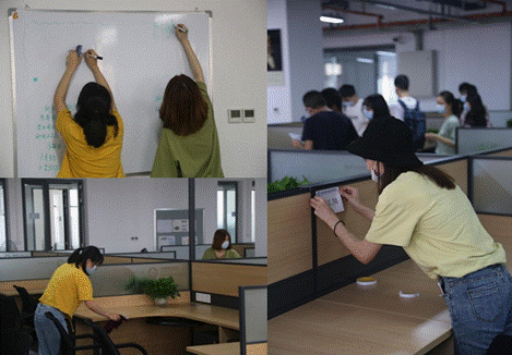 9月3日,浩浩荡荡的“领航员”队伍满怀激动来到了创新港,他们当中很多人也是第一次与创新港“亲密接触”,在为创新港优越的学习科研环境赞叹之余,大家来不及多做参观,便投入到了热火朝天的工作中。首先是“环境大扫除行动”,一个清新怡人、干净整洁的学习环境会让同学们心情愉悦、增强同学们的归属感,为了营造整洁舒适、面貌一新的学习办公环境,“领航员”们撸起袖子,拿起工具,分工明确,积极行动,对研究生工作室、研究生机房及周边公共区域进行了细致的清洁和打扫和装饰布置……鸿理楼数学与数学技术研究院以整洁的工作环境期盼着创新港首批研究生的到来。