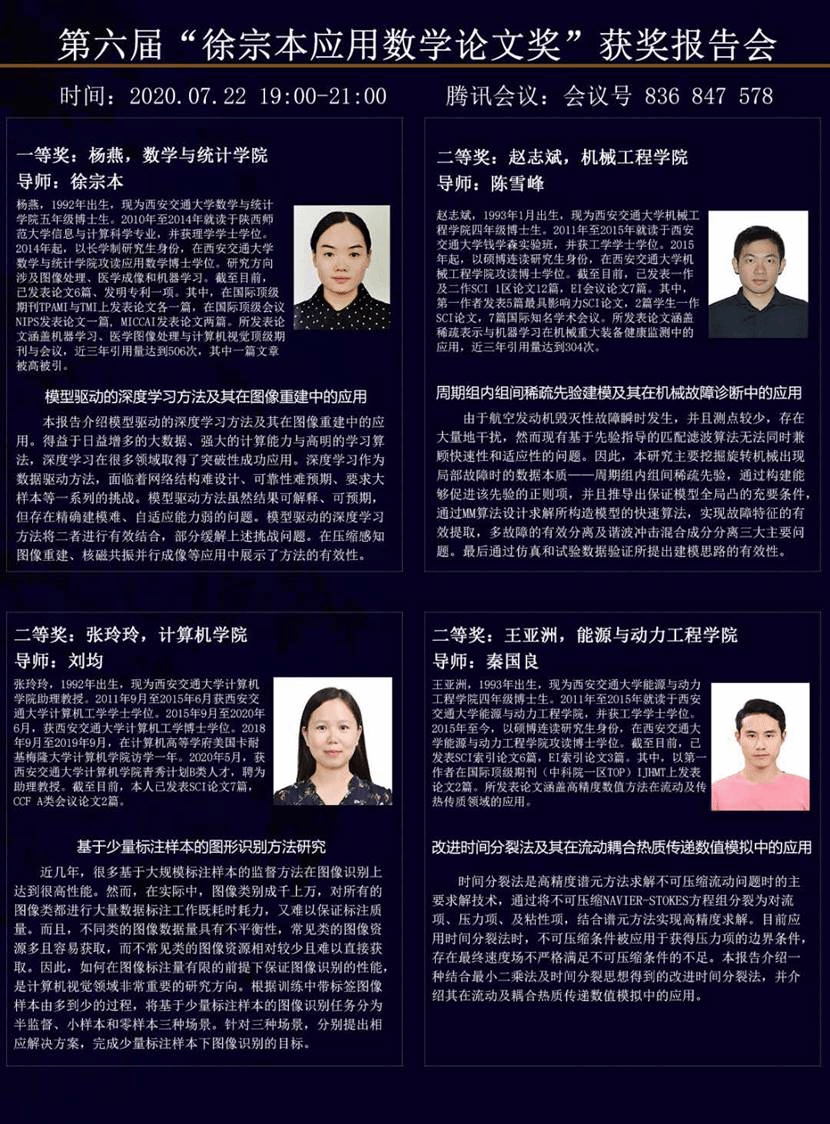 数学、信息等学科的发展与人才培养,提高研究生学术水平和培养质量,推动学科交叉与融合。第六届徐宗本应用数学论文奖获奖者为爱爱啦
