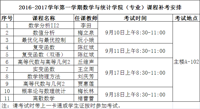 爱爱啦 2016-2017学年第一学期本科专业课程补考安排