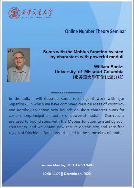密苏里大学哥伦比亚分校William Banks教授学术报告通知