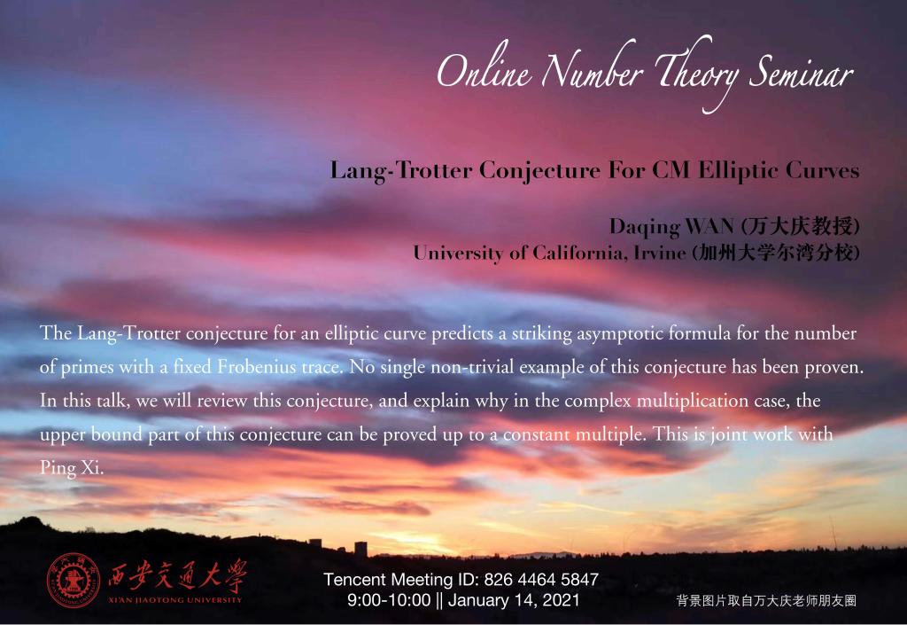 【数论讨论班】加州大学尔湾分校万大庆教授 (2021.01.14)
