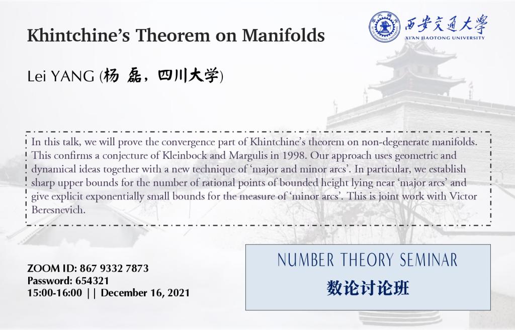 【数论讨论班】四川大学杨磊 (2021.12.16)