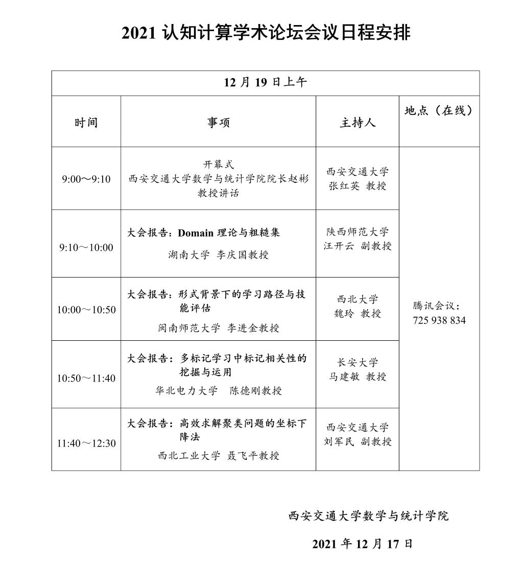 2021认知计算学术论坛会议日程安排及大会报告
