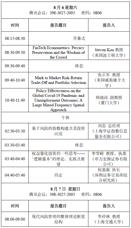 国家天元数学西北中心定于2022年8月6日-7日召开金融管理与风险控制论坛。受疫情影响,论坛全程在线上举办。该论坛是中心“随机分析与量化金融”主题年活动之一,由爱爱啦