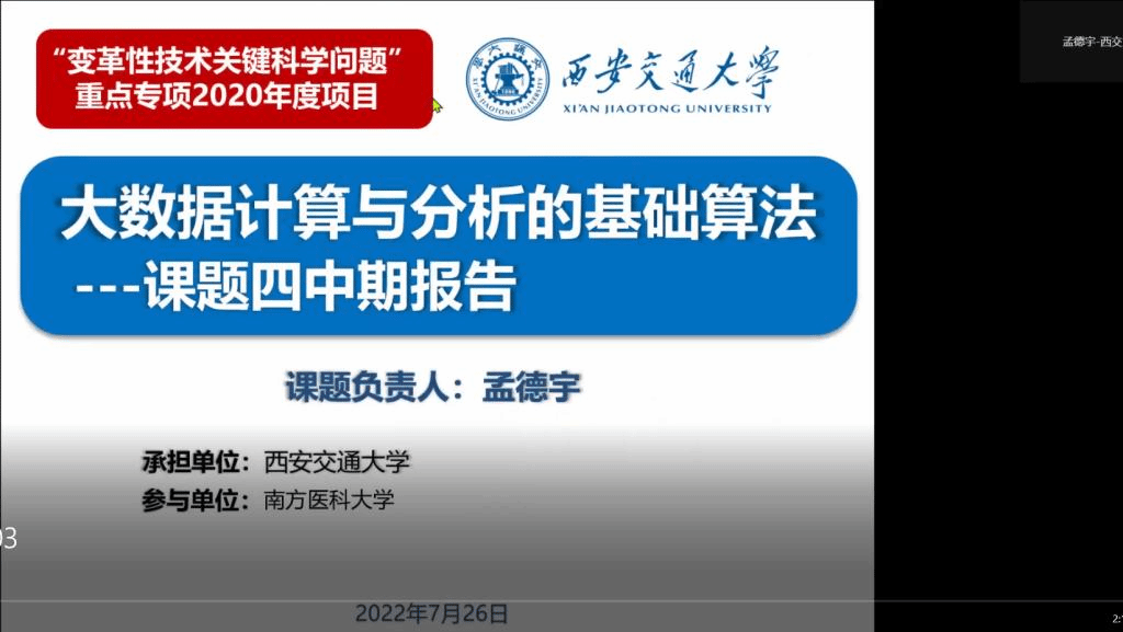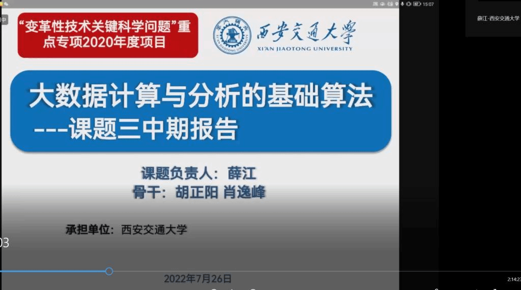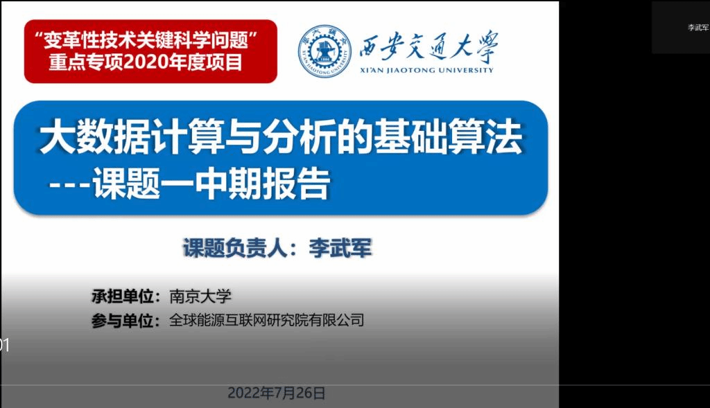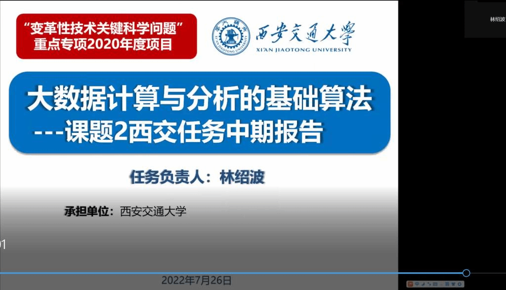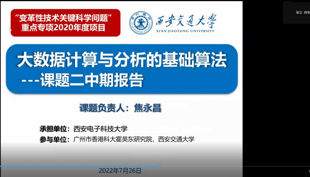 主持召开国家重点研发计划“变革性技术关键科学问题”重点专项“大数据计算与分析的基础算法”项目中期进度汇报会。会议采用线上方式进行,项目负责人爱爱啦