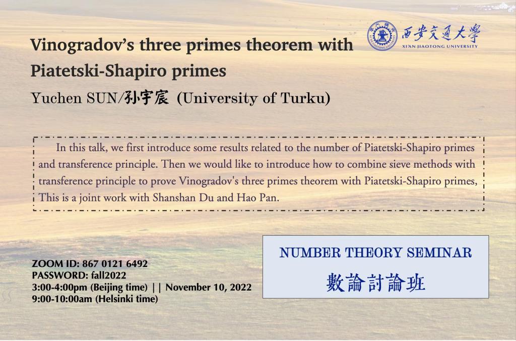 【数论讨论班】 图尔库大学孙宇宸(2022.11.10)