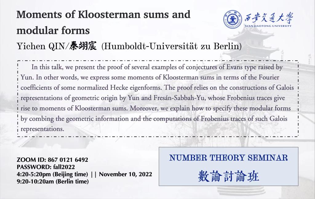 【数论讨论班】 柏林大学秦翊宸(2022.11.10)