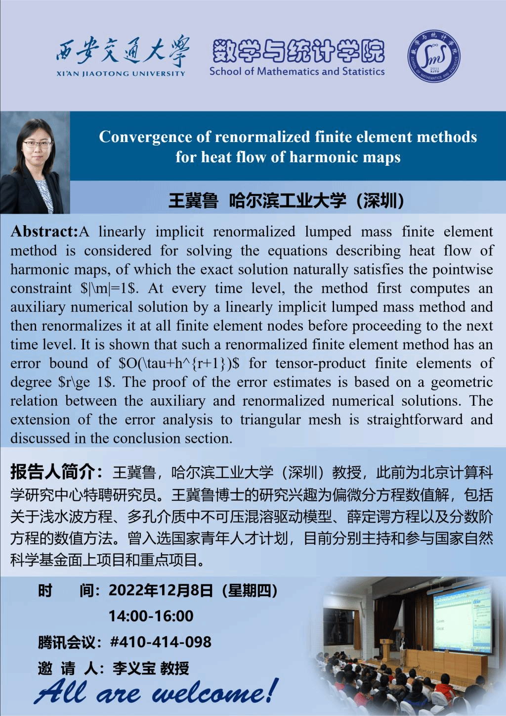 哈尔滨工业大学(深圳)王冀鲁教授学术报告通知