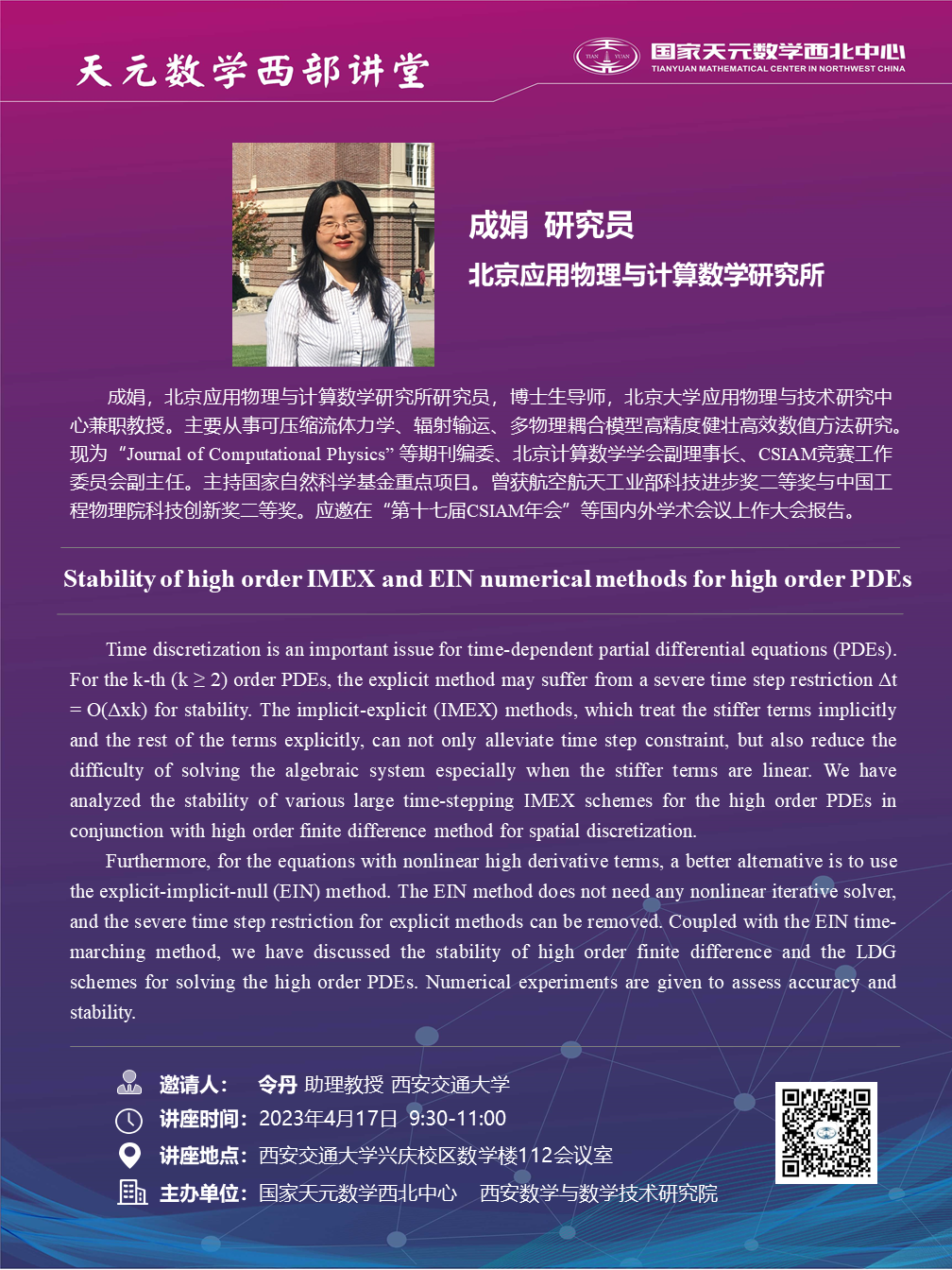【天元数学西部讲堂】北京应用物理与计算数学研究所成娟研究员学术报告