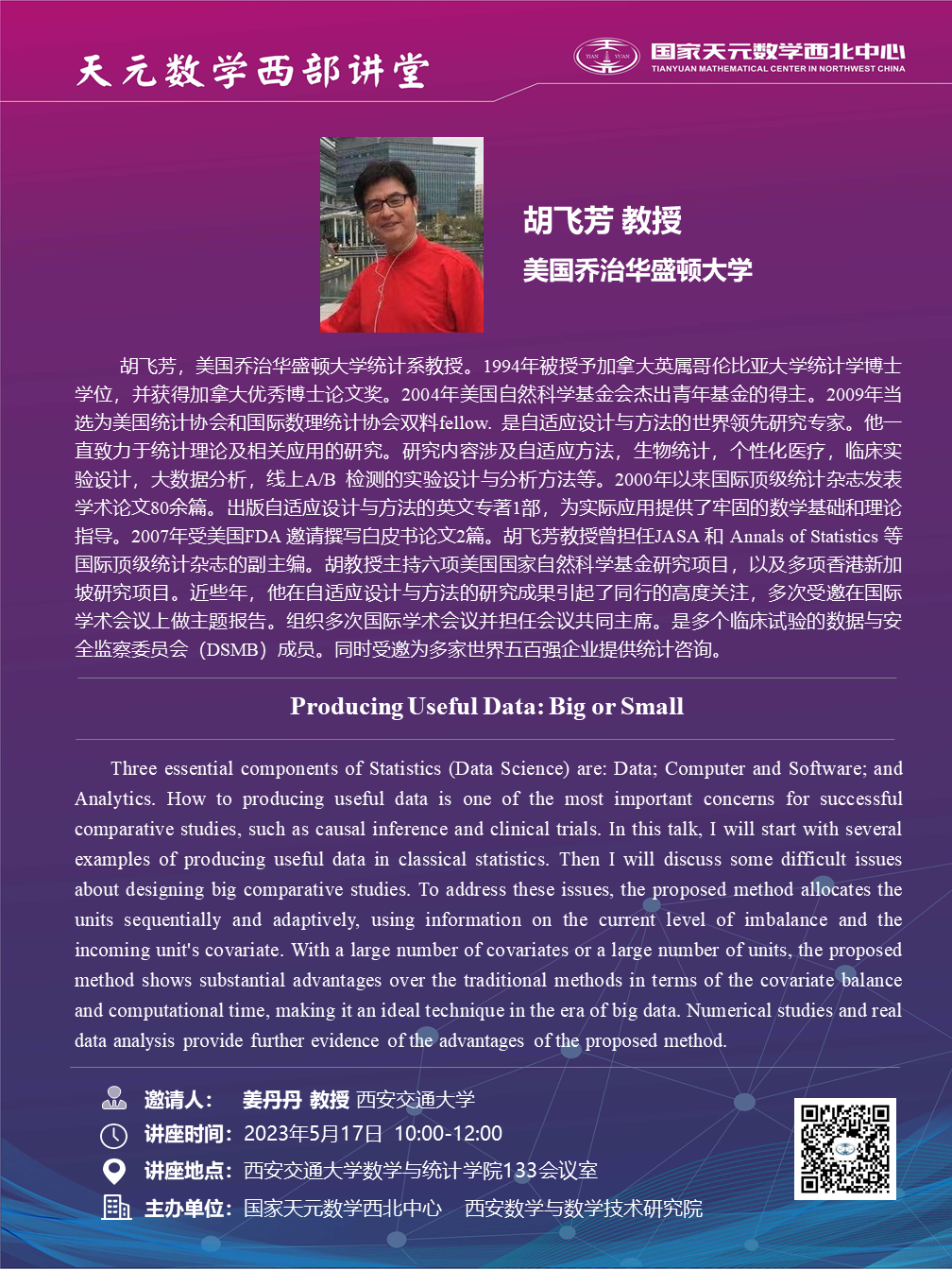 【天元数学西部讲堂】美国乔治华盛顿大学胡飞芳教授学术报告