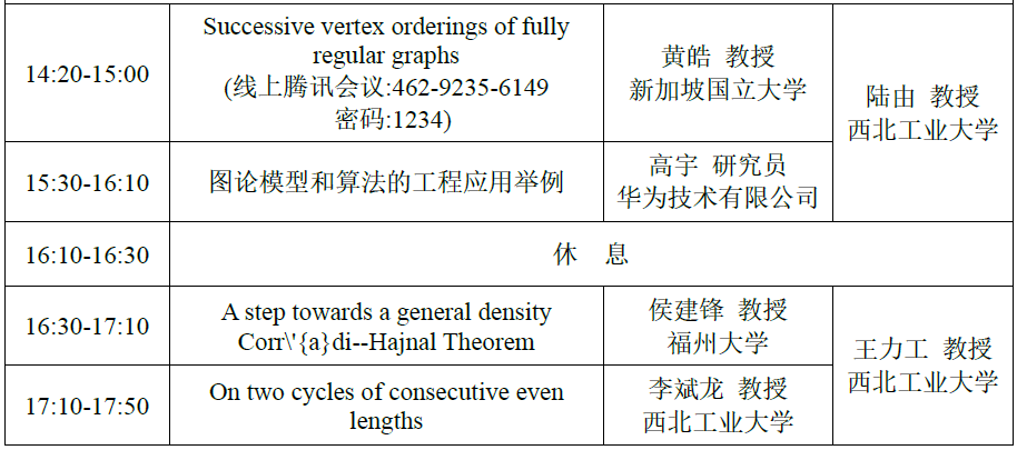 王卫教授、鲁红亮教授共同组织召集。本期研讨班针对当前图论及其应用难题,拟邀请极值图论、结构图论、图算法、概率方法等领域专家学者,共同研讨如何发展新的极值图论及代数图论的研究框架,讨论图与超图图兰问题、图的圈问题、拉姆齐数问题及图的染色问题等,探索研究极值图论问题新的随机方法、代数方法、吸收方法,并研讨极值图论及其稳定性问题,以期在极值图论研究领域公开难题研究上取得实质性进展,进而推动国内图论及其应用研究的发展。