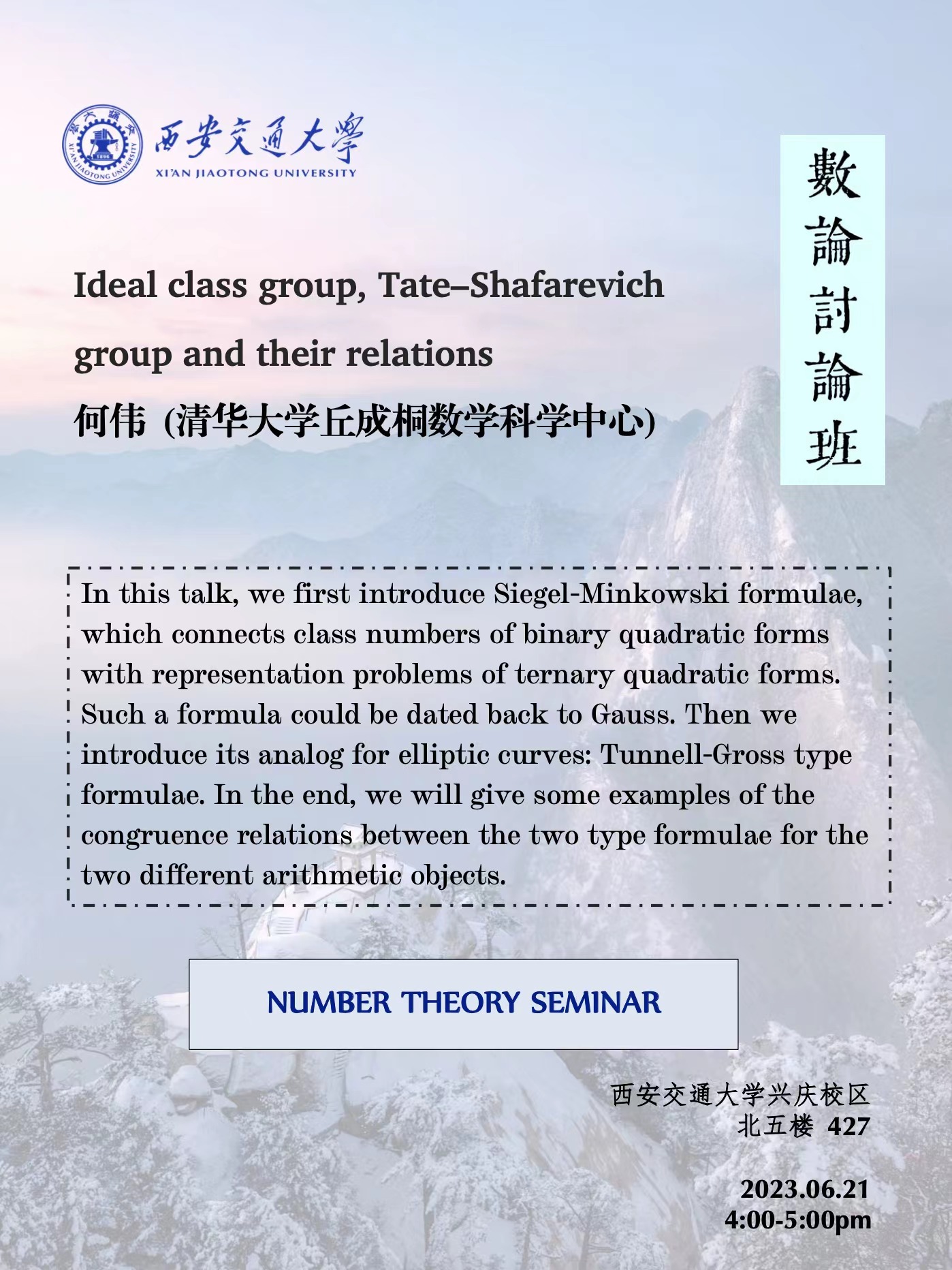 【数论讨论班】 清华大学丘成桐数学科学中心何伟(2023.06.21)