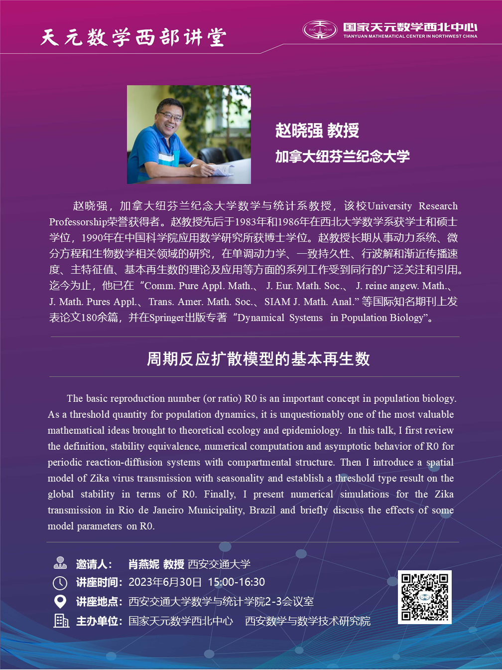 【天元数学西部讲堂】加拿大纽芬兰纪念大学赵晓强教授学术报告