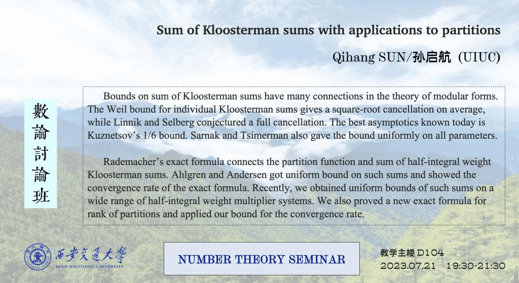 【数论短课程】 伊利诺伊大学厄巴纳香槟分校孙启航(2023.07.21)