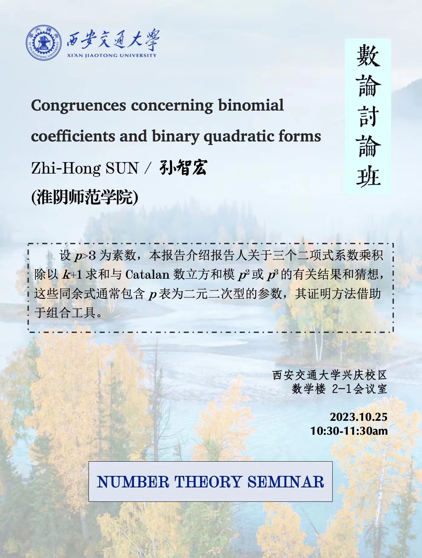 【数论讨论班】 淮阴师范学院孙智宏 (2023.10.25)